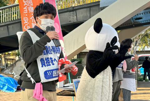 「長時間労働や夜勤の多さ、休憩が取れない時もある。患者さん一人ひとりに丁寧に関わりたいと思っていても時間に追われる毎日」「今後、介護が使いたくなってもヘルパーもケアマネもいません、役所に相談して下さいという状況が起こる可能性があります。」「医療、介護の現場では人手が足りません。この請願署名を集めて国に声を届けたい、是非ご協力を」と訴えました。