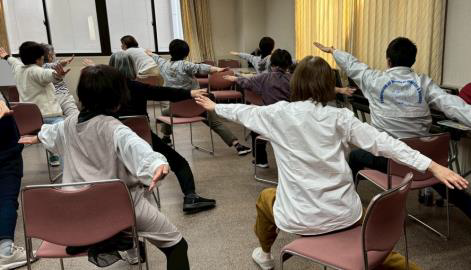 ヨガインストラクターの松尾明子先生の指導のもと、皆さんチェアヨガで凝り固まった体をほぐし身心のリフレッシュができました。座って行うチェアヨガは、初心者にも簡単に取り組めると好評です。